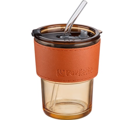 Отзыв Стеклянный стакан с трубочкой и капхолдером PERFECTO LINEA 400 мл Amber 31-400200