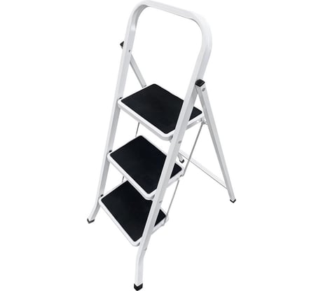 Пожалел о покупке,на лестницу ступать и стоять на ней не удобно!Надо делать упор на носок ступни,что бы ступенька не поднималась!А на третьей ступеньке стоять опасно,точки опоры нет,если вес тела сместишь на середину ступни или на пятку,ступенька поднимается и можно брякнуться со стремянки!У меня есть простая стремянка на ней в разы безопасней и комфортней стоять!
