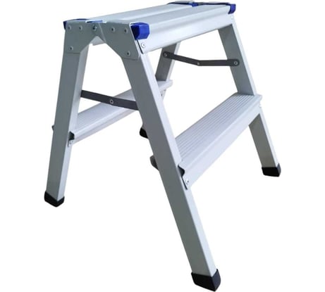Удобные широкие ступени, даже шире, чем на стремянках с обычными широкими ступенями. Ступени достаточно прочные. Конструкция устойчивая, если не скакать и не прыгать на стремянке.