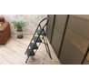 Для использования в типовой квартире (где высота потолков до 270 см) самая подходящая модель. Стальная, компактно-складывающаяся конструкция, устойчивая, с широкими ступенями. Сам я богатырскм телосложением не отличаюсь( всего 85 кг), но в процессе самого интенсивного ремонта в нашей новой квартире, эта лестница ни разу не подвела. Она действительно крепкая, устойчивая и удобная в работе. Радует удобство и компактость при хранении данной лестницы.