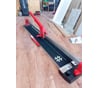очень хороший плиткорез, в работе понравился. Выглядит один в один как плиткорез более раскрученного и разрекламированного бренда (обратите внимание на каретку - один в один). И это понятно - никто эти плиткорезы сам не собирает - их заказывают в Китае, возможно даже на 1 заводе. В пункте выдачи сразу проверил - каретка не люфтит, рельс прямой, станина ровная. Дома сначала настроил рельс (направляющую), чтобы ролик был ровно над линией разлома (с обоих концов пришлось отрегулировать). Потом настроил лазер, чтобы светил четко на ролик, даже в самом конце станины. На дальнем конце тоже есть линейка, по ней лазер четко в центр светит теперь. Плитку 1,2 м пока не резал, не было возможности. Но 60 см режет в легкую, даже полоску 3 см легко. Честно говоря, разница в цене между 80 см, 1 м и 1,2 м не такая уж и большая. Лучше сразу взять 1,2 м и не ограничивать себя в выборе плитки. Даже на 1 объекте этот плиткорез сразу окупится, даже если делать для себя.
