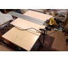За менее месяца использовал уже его по полной программе, делал на нем столешницу , через отверстия в верстаке – крепил столешницу через мебельную гайку штифт и работал спокойно , устойчивость понравилось. Сам верстак естественно рассчитан на обработку с деревом , пробовал в него аккуратно зажимать профильную трубу 50х30. Слишком сильно лучше не зажимать струбциной , всё-таки металл.... а так выдержал и металл в зажиме , делал на нем ножки для стола , зажимал и шлифовал их , прихватывал сваркой.... Все равно мне понравился верстак , когда надо достал , когда не надо убрал куда угодно. В багажник сандеро спокойно залезает - в сложенном состоянии. Единственное планирую в дальнейшем , вместо деревянных вставок , для работы с металлом , сделать металлические раздвижные пластины. В заключение, хочу сказать одно , для домашнего пользования и среднего профессионального- не большого производства пойдёт даже очень.