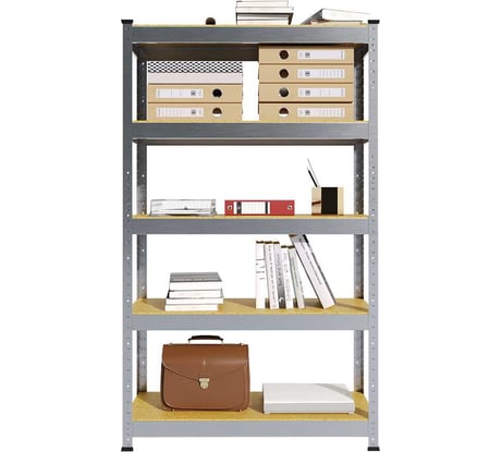 Отличный стеллаж для своих целей и использования. Начиная с компактной упаковки, помещающейся в багажник. Можно брать разные размеры и комбинировать их между собой, а также докупить отдельно полки, соединители, стойки и т.д. Для сборки ОБЯЗАТЕЛЬНЫ перчатки, т.к. металл 0,8, поэтому острые грани. Желателен резиновый молоток. С ним удобно, особенно когда нужно собрать несколько стеллажей. Также нужна плоская отвёртка для направления язычков в пазы. Главное, при сборке не торопиться. Вставить язычки поперечины в выштамповки стойки, слегка осадить. Если язычок упирается, чуть нажать на кончик отвёрткой и молоточком осадить до упора. На первом ярусе становится понятно, что к чему, и дальше идёт проще. Полки из МДФ, весьма жёсткие. Думаю, понятно, что это исполнение (оцинковка + МДФ) не для влажных помещений типа погреба.