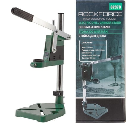 Отзыв Стойка для дрели 400 мм, ход 0-60 мм, размер стола 150x150 мм, диапазон держателя 34-43 мм Rockforce RF-82970(52320)