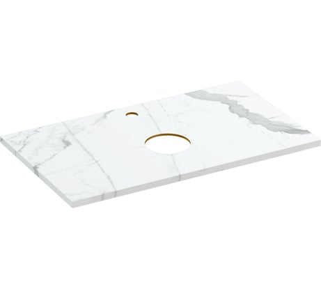 Столешница с имитацией мрамора. Хорошее качество, без сколов. Готова для установки раковины и смесителя.