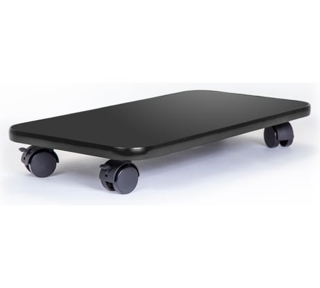 Действительно напоминает скейт - доска, покрытая пластиком, с четырьмя колёсиками. Подставка удобна, когда системный блок стоит на полу, чтобы придать ему мобильность при необходимости передвинуть. Мой системник стоит под столом на стационарной полке. И если надо очистить противопылевые фильтры, или залезть внутрь, то необходимо или полностью отключать все провода и выставлять системник на свободное место, либо самому лезть под стол. А с этой подставкой жизнь упростилась. Можно просто взять и выкатить. Чтобы системник не укатился, два колеса снабжены рычажками-фиксаторами. Колёсики необходимо прикручивать самому, но проблемы это не составляет - отверстия под саморезы намечены.