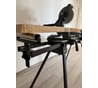 Компактность, легкость относительная 12кг, но по сравнению с остальными на рынке, этот сильно легче. Очень добротная конструкция, везде толстый металл, боковые расширители стола на двух направляющих. Клал две доски 40ки, расширители их даже не заметили. Складывается/раскладывается за 20 секунд, удобно переносить. Подвижный стол на быстрозажимах, посадка адаптируется под любую торцуху или станок. Расширители тоже на удобных быстрозажимах, ролик регулируется по высоте. Верстак устойчивый, если отпустить торцуху, то нет даже намека на опрокидывание.