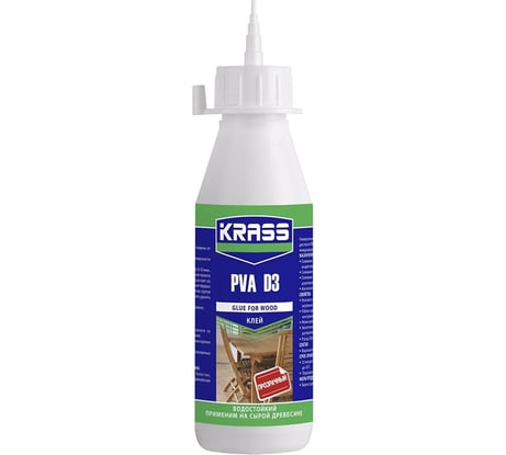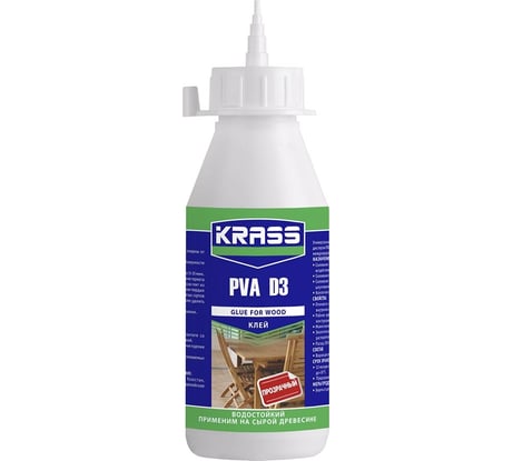 Отзыв Водостойкий клей KRASS pva d3 для древесины, 0.5 л ЛА-00001477