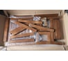 Отверстия в дощечках для шурупов сделаны её совсем симметрично. Опоры спинки стула выступают одновременно ножками для последней ступени стремянки и из-за этого немного стираются. Последний элемент сборки - соединение верхней и нижней части шупуром, требует дрели как минимум. Также метрический крепёж требует двух отвёрток. Неплохо было бы это указать в описании. Если стул поднимать привычным движением за спинку или сидушку - нижняя часть стула провисает. Там бы придумать какую фиксирующую скобу - цена решения копеечная, а удобства добавит существенно. Также из недостатков - мелкие шероховатости на петля (см. фото)