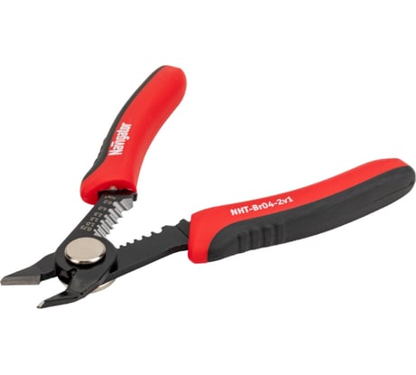 1. пластик (черный цвет) трется об основу (металл, красный цвет), собран криво. 2. тугой ход рычага (пластик трется об металлическую основу). 3. при попытке расходить рычаг из съемника вылетел металлический бочонок-толкатель. на этом жизнь съёмника закончилась. сдал обратно. 4. опробовать в работе не удалось, но визуально "ножи" для съема изоляции слишком хлипкие, при такой длине вылета губок развитие ими достаточного усилия для снятия изоляции вызывает сомнение. 5. "нож" для резки провода напоминает лезвие обычного канцелярского ножа. Итог: недоработанная в плане надежности и удобства конструкция.