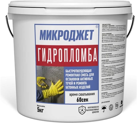 Отзыв Гидропломба быстротвердеющая для остановки активных течей Микроджет 5 кг 3059