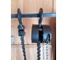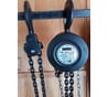Поставляется в фанерном ящике. Длина рабочкй цепи 6м. Нижний крюк с блоком. Таким образом из-за блока высота подъема 6м/2 = 3м и усилие получается 2тонны. Свободный конец цепи закреплен к корпусу на болт, легко можно отцепить, снять блок и будет вариант с высотой подъема 6м и усилием 1т. Корпус круглый, не такой как на всех фото в интернете.