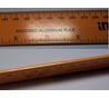 Приобреталась за контрастную и (была надежда что) небликующую шкалу. Этому критерию как-то соответствует. Расхождение шкалы (сравнивал с имеющимися адекватными линейками) <0.5 мм на 300мм. Метрическая шкала - по низу на одной стороне, по верху - на другой.