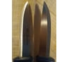 - спуски не равномерные. чисто эстетический недостаток. на работе не скажется, как и не убранный небольшой заусенец (за секунд 20 мусатом лечится) - рукоять потолще б была поудобней - "ножны" посредственные. скорей транспортировочный чехол