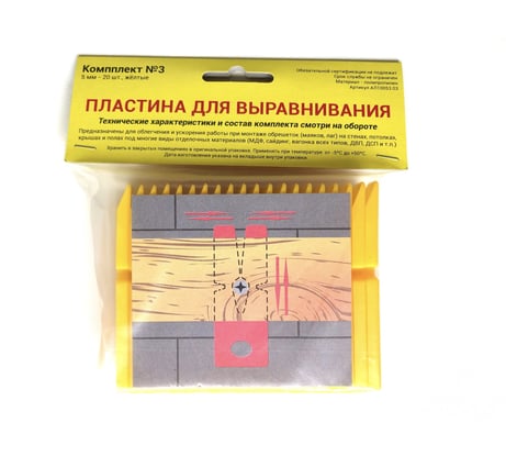 Рекомендую к покупке все комплекты этой серии. Знал бы раньше - не пилил бы квадратики из остатков дерева на подкладки для выравнивания лаг при монтаже обрешётки. Приобрету ещё в большом количестве, так как ремонт дома продолжается. ОЧЕНЬ необходимая вещь