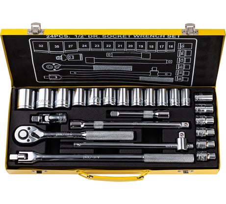 Компактный набор из хорошего материала и стали. Шикарные головки до 32 размера. Очень удобный и прочный кейс