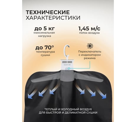 Очень выручает, когда нужно быстро высушить вещи. В комплекте идут воздуходувы для обуви, держатели для одежды, прищепки, мешок для хранения насадок и чехол для одежды. Кроссовки высушила минут за 40. Сушилкой довольна!