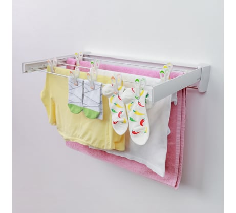 Приобрел для установки на лоджии. Назначение - сушка мелких вещей. Повесил на 2 "клопа" и застопорил третьим. Перекладины - залитый пластиком металл (пружинят). Корпус и механизм - пластик. Выдерживает нагрузку порядка 4-5 кг (проверял пружинными весами на средней перекладине). Но это все же пластик и стоит более тяжелые вещи вешать ближе к стене. Жена счастлива.