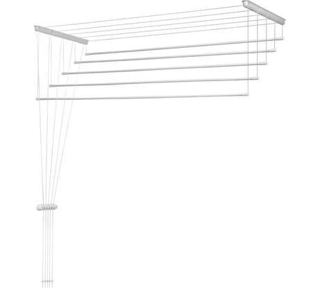 Прекрасная цена за прекрасную сушилку, покупала год назад до сих пор удачно пользуемся)) правда чуть чуть веревочки перекрутились и палки стали висеть не ровно, но это можно отрегулировать