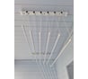Недорогая. Можно закрепить на стене, не только на потолке, что уменьшает шанс падения сушилки и соседского потолка вам на голову :) Крепления для стены монтируются отдельно, в итоге сушилка висит не совсем горизонтально, но крепить к стене намного удобнее так, чем сразу весь кронштейн с палками и верёвками. Есть специальная палка-цеплялка для колец. Палки для сушки металлические, провисают меньше, чем пластиковые.