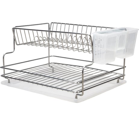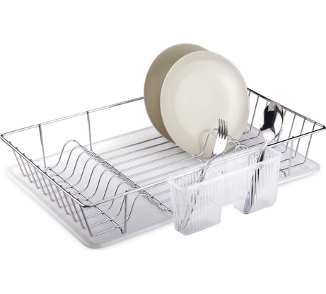 Достоинства: Удобная, вместительная Недостатки: Стакан для приборов крепиться только снаружи, при сушке вода из стакана вытекает на стол, было бы правильно чтобы стекала на поддон