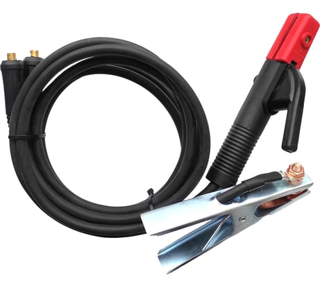Медный провод, гибкий на морозе, дугу держит отлично. Длина честная. Держак и зажим массы достойного качества, в работе удобны.