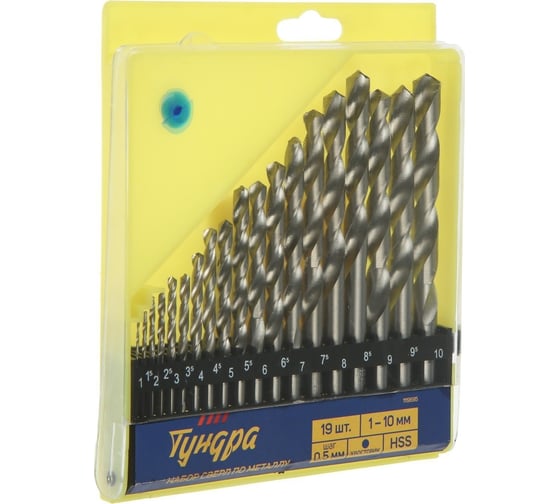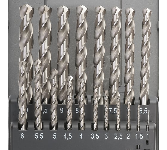 Набор сверл по металлу 1-10 мм, 19 шт. Туламаш 72665