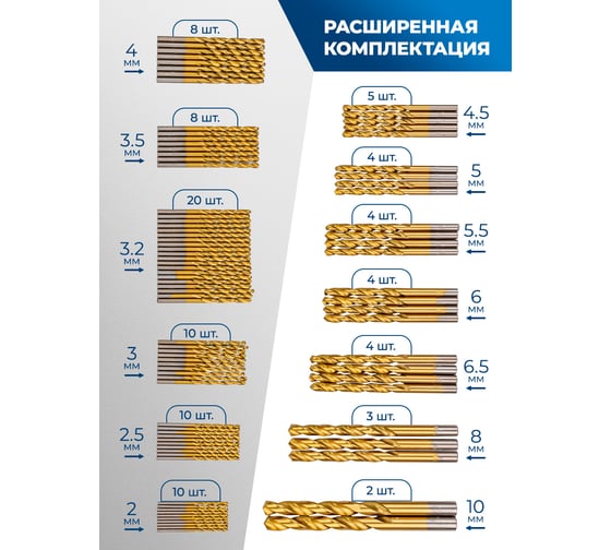 Набор сверл по металлу HSS нитрид титана 1-10 мм, 19 шт 888 6863775