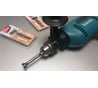 Вполне себе достойно сверлит, подробнее отзыв на 15 и 16 мм с фото оставлял. Удобно футляр завода многоразово использовать можно.