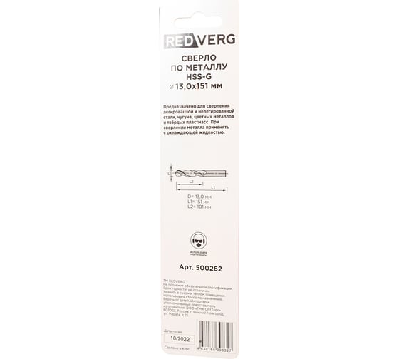 Сверло по металлу HSS-G 13 мм REDVERG 6680973