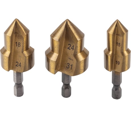 Отзыв Набор ступенчатых сверл для полипропиленовых труб RAGE 15-19, 18-24, 24-31 мм, шестигранный хвостовик 551405