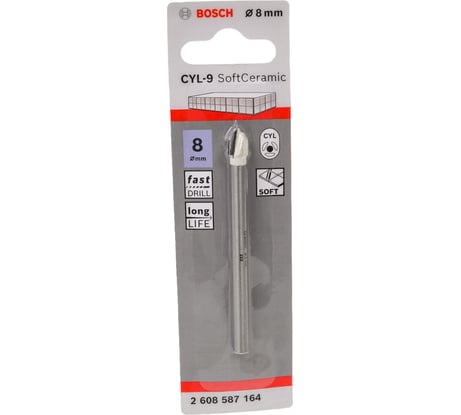 Это пародия на сверло. Сплошное мучение. Пытались сверлить итальянскую керамическую плитку, даже не керамогранит. Одну дырочку сверлили почти час.Столько же вторую. На этом сверло закончилось. Сверлили только плитку, до стены не доходили. Купили потом сверла архимедовские по 80 руб и быстренько насверлили еще дырок, за 10 минут каждую. Для Боша делать такие сверла - это просто позор!