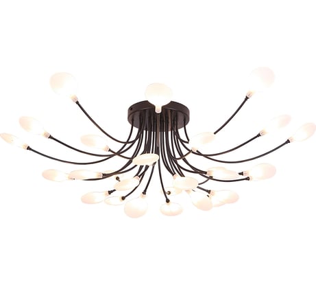 Отличная люстра! Очень долго выбирала, тк обычно для низкиз потолков идут однотипные светодиодные светильники. Сначала сомневались, тк не было отзывов с фото, ну а теперь довольны, сразу притягивает внимание. Подходит для натяжных потолков.нужен определенный цоколь ламп.лепестки пластиковые, но дешево не смотрятся Что особенно приятно - покупала ее за 12 тысяч по акции