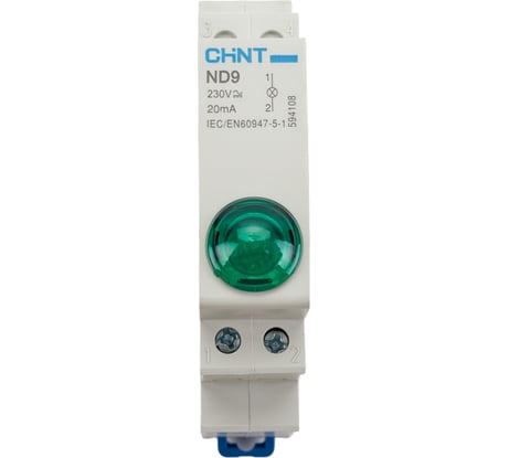 Светодиод в качестве светового элемента. Светит очень ярко, в сумерках даже слепит. Ток потребления 20 мА. Занимает один модуль. Корпус вроде не разваливается при затяжке болтов клеммника, но там и болты такие, что усилие большое не приложить.