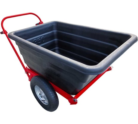 Покупал для вывоза снега с территории,корыто-самосвал отлично работает, сама рама крепкая, корыто большое. Снизил бал-могли бы схему положить, некоторые отверстия несоосны, пришлось рассвеливать. На врятли потянет землю, или песок, а так апилки, листва, снег самое то. Между калесами расстояние 85см,поэтому нужна широкая калитка чтоб проехать.