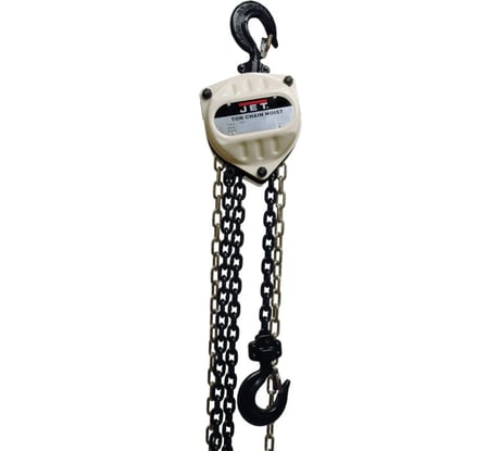 Работает с огромным шумом, цепь гремит как в последний раз, по балке двигается еще громче.