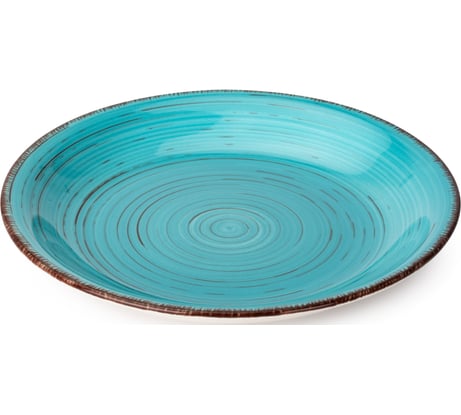 Глазурь выполнена в виде концентрических кругов, как изнутри, так и внутри тарелки.