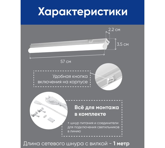 Светильник IEK LED ДБО 5001, 18вт, 4000К, IP20, 600мм, металл LDBO0-5001-18-4000-K02