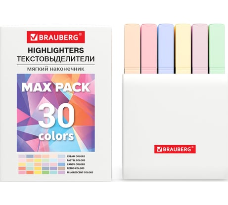 Набор текстовыделителей очень удобен для работы. Пастельные цвета нежные, не режут глаза. Скошенный и кистевой наконечники — отличная идея, можно выделять как мелкий текст, так и делать акценты. Чудесно, что чернила не просачиваются, а через восемь часов без колпачка они не высыхают. Рекомендую!