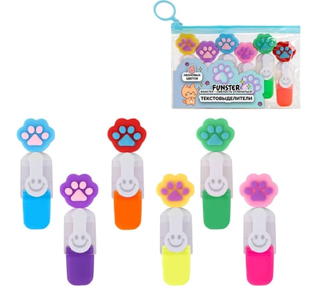 Отзыв Набор текстовыделителей с топперами 6 ЦВЕТОВ НЕОН FUNSTER, ЛАПКИ, линия 1-4мм, 152645