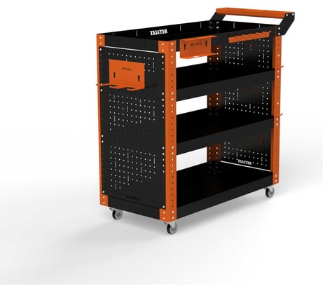 Стоимость 3000 рублей Отличная покраска Добротный металл Колеса со стопорами Жесткость конструкции Два подстаканника под пиво Набор дополнительных модулей, таких как подвес для шуруповерта, отверток и несколько крючков Повторюсь, это за 3000 рублей, приехало на следующий же день после оплаты заказа
