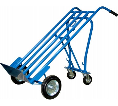 Удачная тележка, качественно и аккуратно сделана. Самое удобное - что можно использовать и как двухколесную, и как четырехколесную, но при хранении она стоит вертикально и занимает значительно меньше места, чем четырёхколёсная
