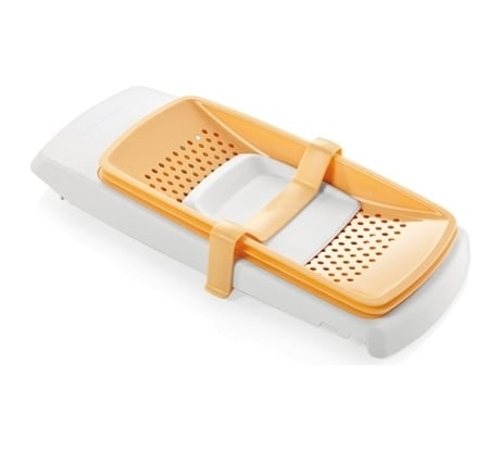Очень удобная тёрка, легкая, компактная, с хорошей ручкой, устойчивая. При использовании почти не приходится прилагать никаких усилий. Очень легко моется, потому что внутрь легко входит рука с губкой. Жена очень довольна покупкой, а ей угодить совсем не просто.