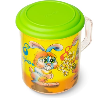 Кружка состоит из трёх частей: наружная прозрачная колба, в которую плотно вставлен ещё один пластиковый стакан и сверху всё это накрыто пластиковой крышечкой которая держится только благодаря гравитации, и никаким образом не фиксируется, просто кладётся сверху.