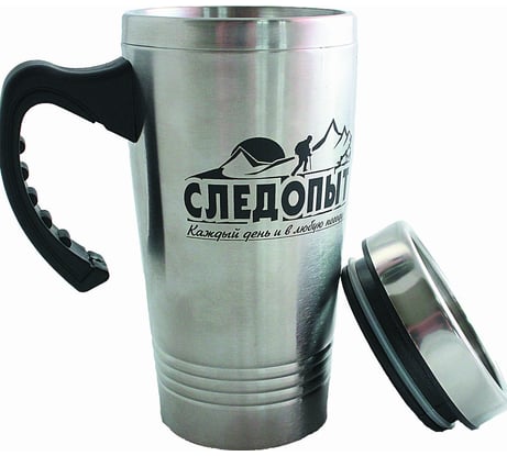 Держит тепло, сильно не нагревается, в руке удобно держать и за ручку и просто как стакан.