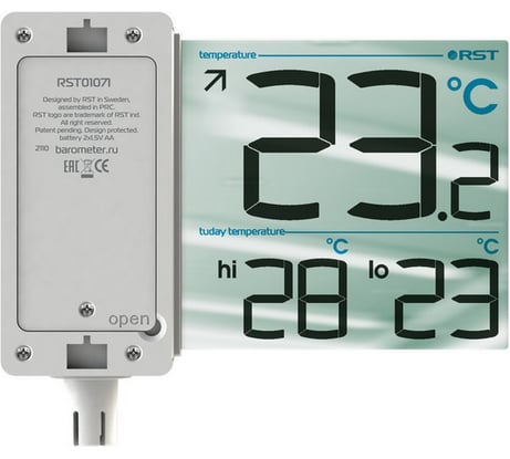 Крупный и контрастный дисплей, хорошей батарейки хватает на 2 года работы термометра, дальше пока не удавалось проверить.