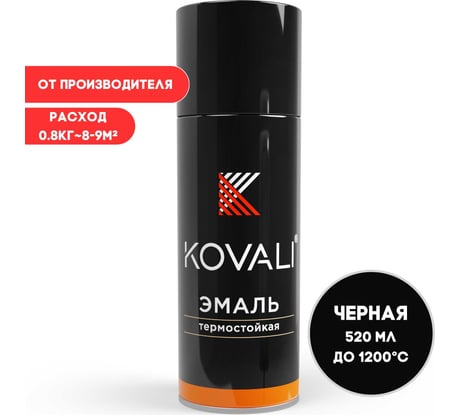 Отзыв Аэрозольная эмаль термостойкая матовая KOVALI Сигнальная черная RAL9004 1200С (520мл) kov10.2.520