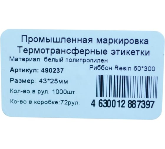 Этикетка термотрансферная ОФИСМАГ Полуглянец, 43x25 мм, 1000 этикеток 52199 111972