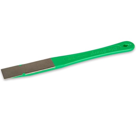 Отличный высококачественный алмазный брусочек. Ровная поверхность, удобная ручка, достаточно агрессивный съем металла. Брал в основном для заточки разметочных ножей, а так можно точить хоть ножницы, хоть фрезы со свёрлами. Приемлемая цена.
