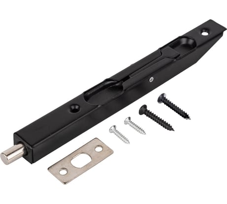 Обычный ригель, работает. В комплекте идет крепеж в виде саморезов и ответная часть.